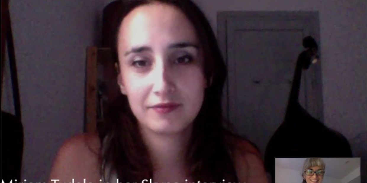 Miriam Tudela's interview was part of the research presented in the Ph.D. thesis. First, we had several conversations about her idea of conservation. Her pice had to be preserved pristine and in the best of the conditions. We had to remake the exterior drawing in case of erosion. After a series of circumstances, Miriam changed her idea of deterioration, and we decided to conduct a formal interview.